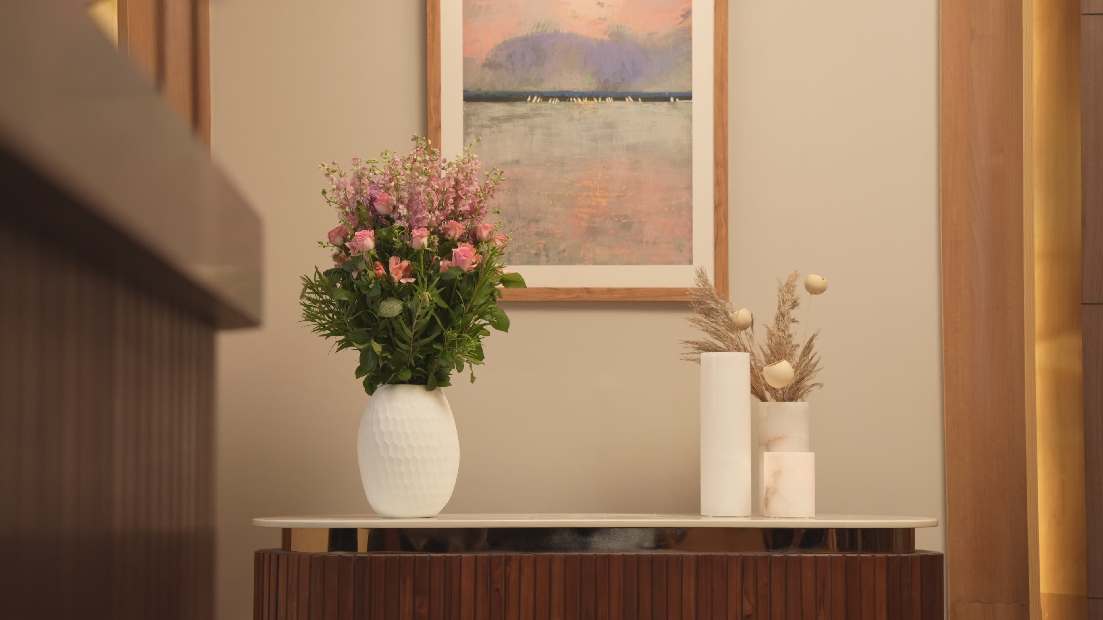 Mouth-blown by skilled artisans, this vase offers a perfect balance of modern design and timeless craftsmanship. Whether styled with seasonal florals or displayed as a standalone statement, Linear Frost brings depth, light, and quiet luxury to any space.