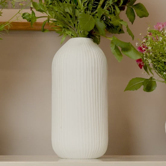 Introducing Lino, a vase that captures the quiet beauty of simplicity. Inspired by the gentle texture of linen, its ribbed glass surface brings a tactile elegance to any setting. Crafted with precision and finished in a soft matte white, Lino blends Italian minimalism with modern sensibility.